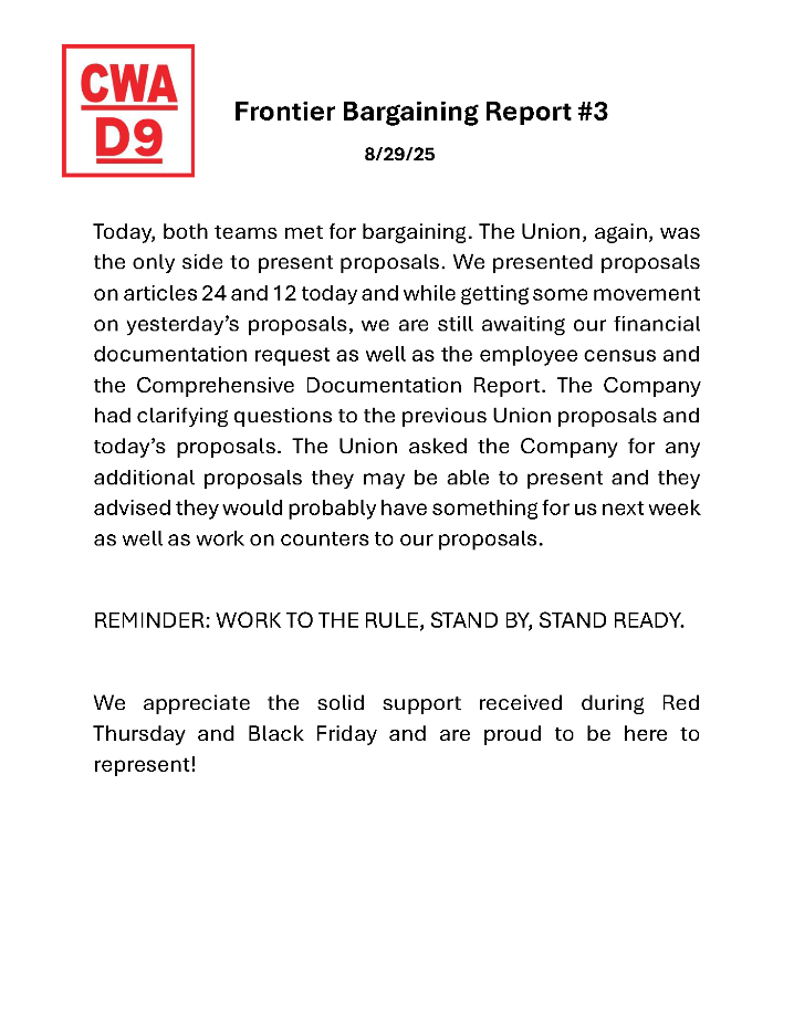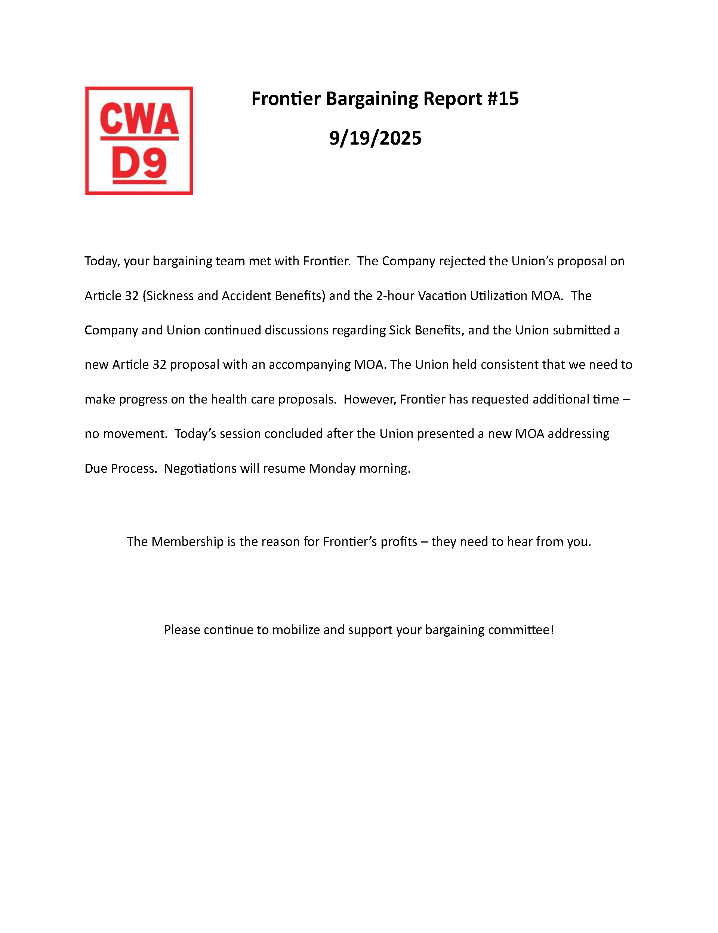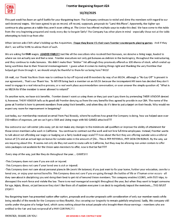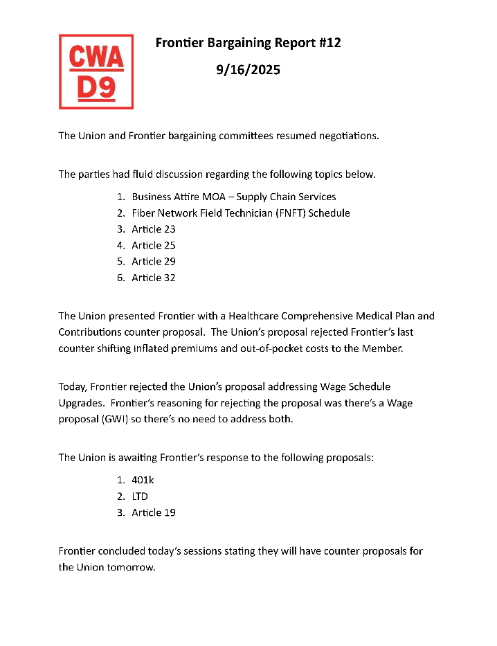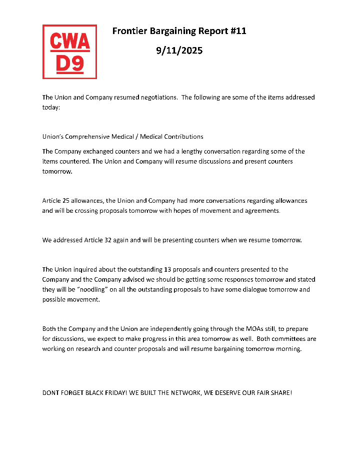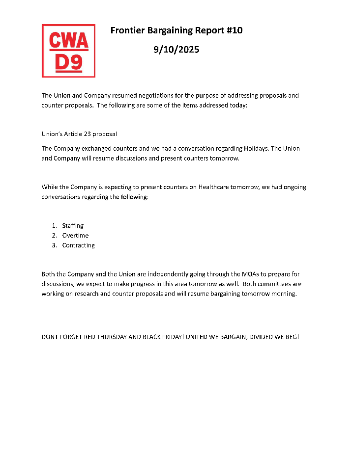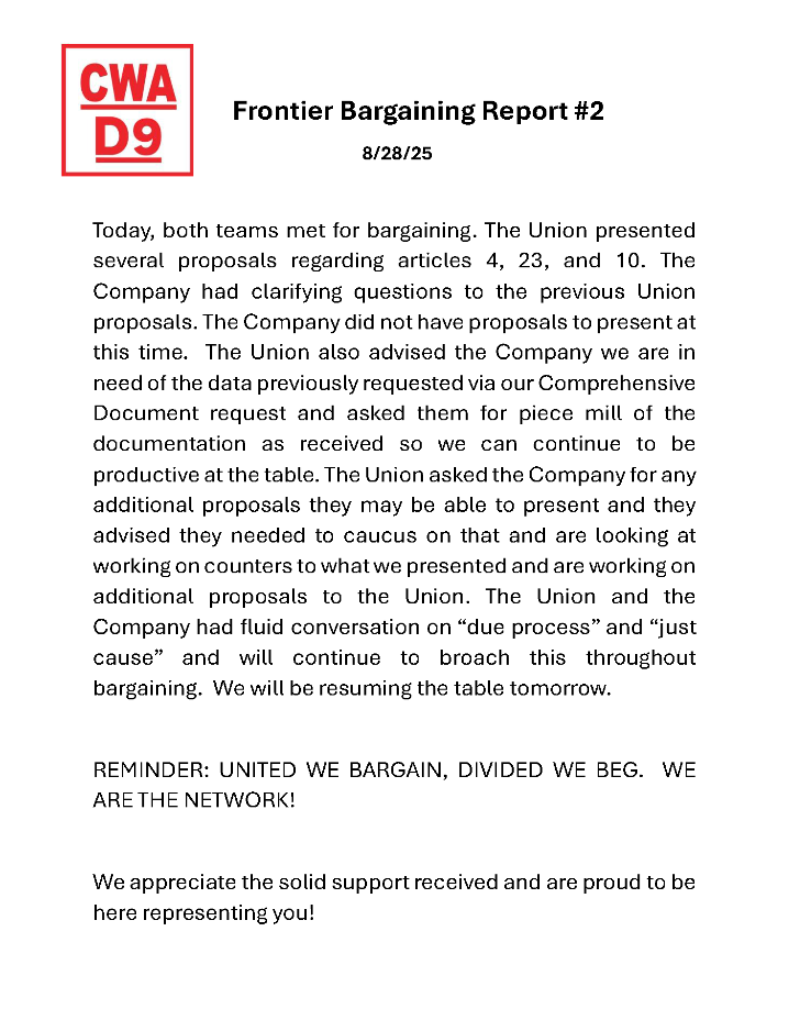** Frontier Bargaining Updates **