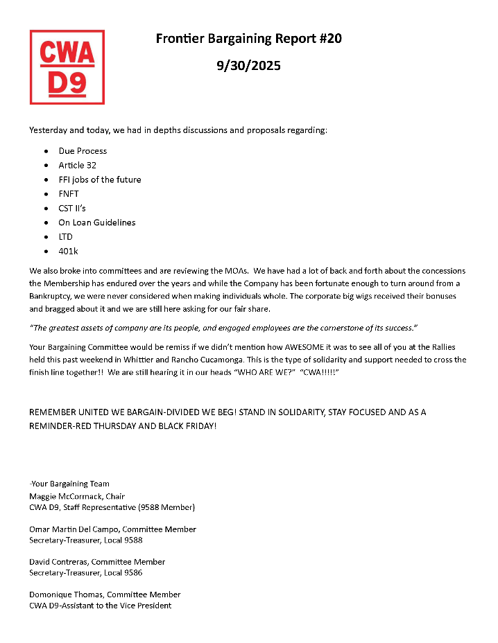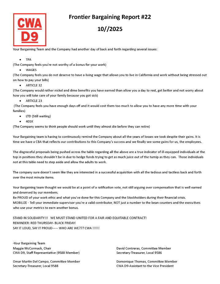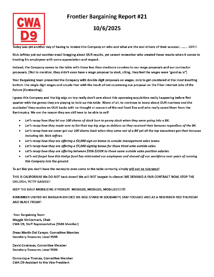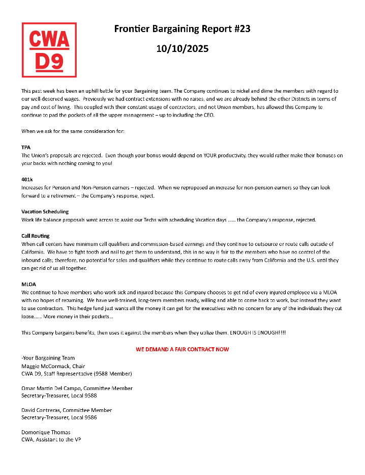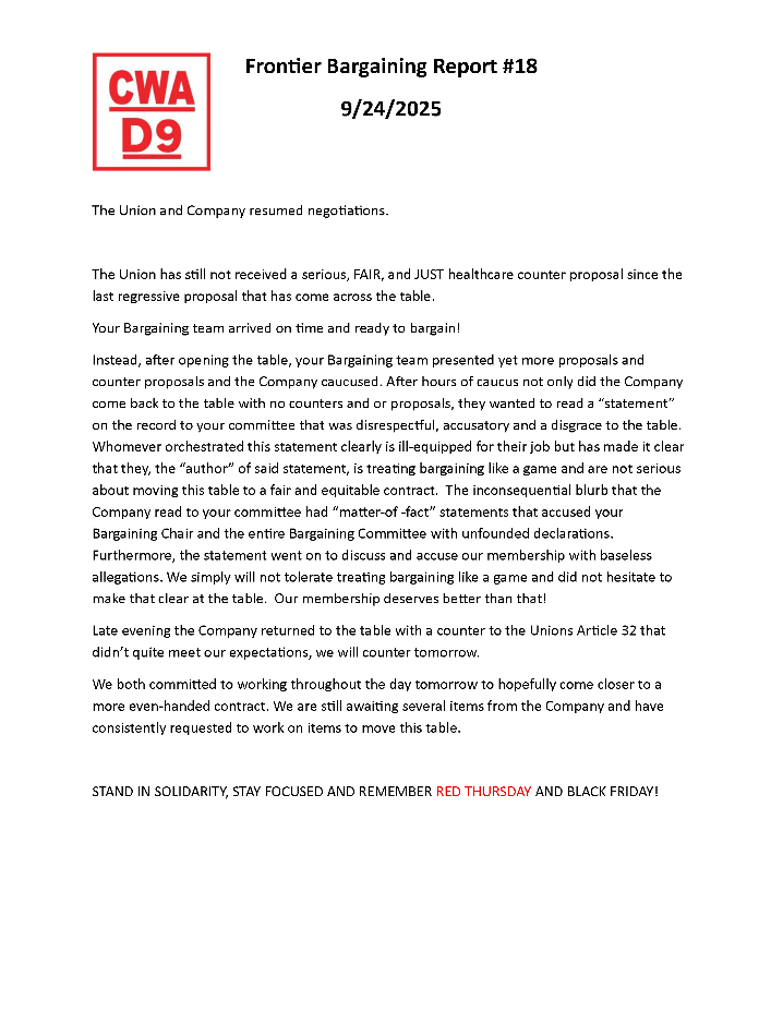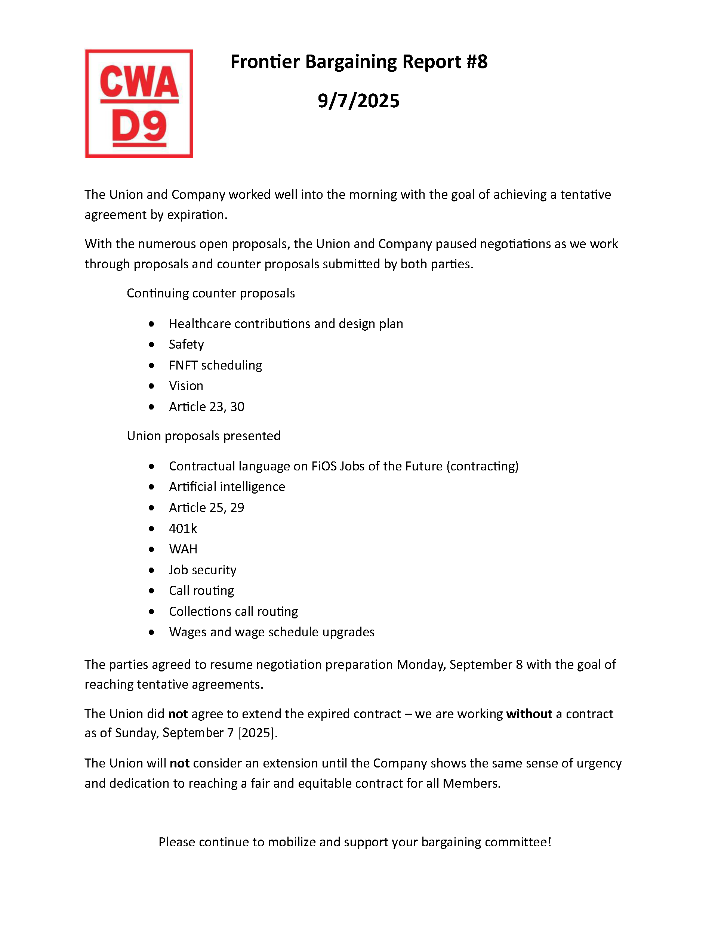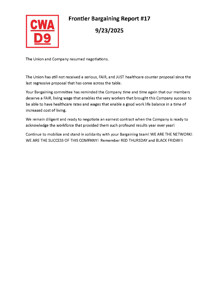 ** Frontier Bargaining Updates **