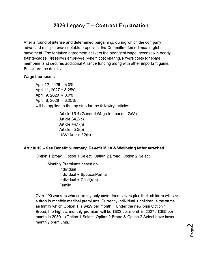 ** Legacy T Bargaining Updates **