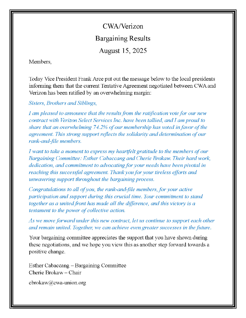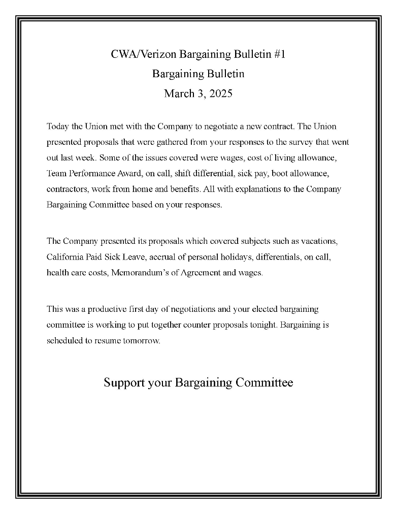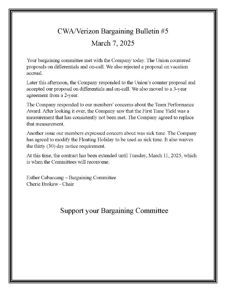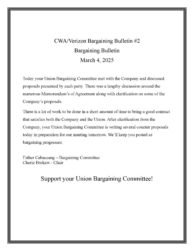 **CWA/Verizon Bargaining Bulletin #10 July 16, 2025**