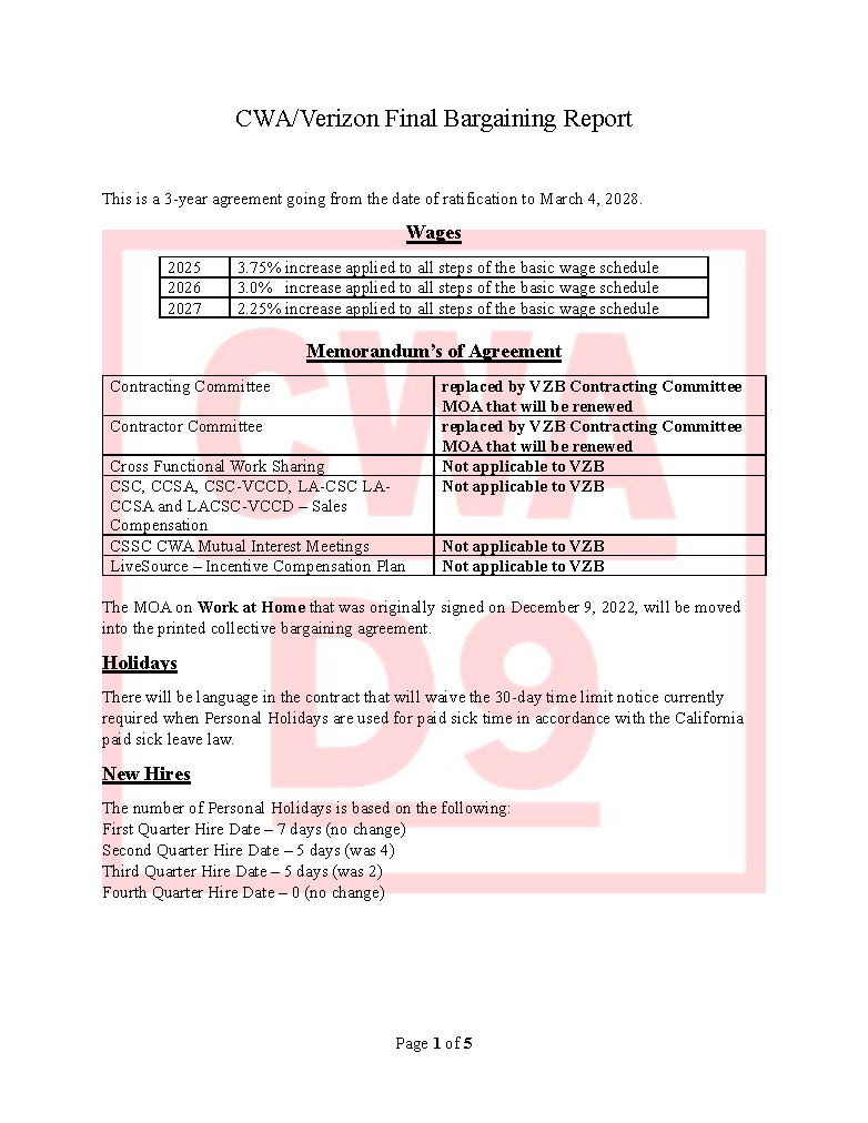 **CWA/Verizon Bargaining Bulletin #9 July 14, 2025**
